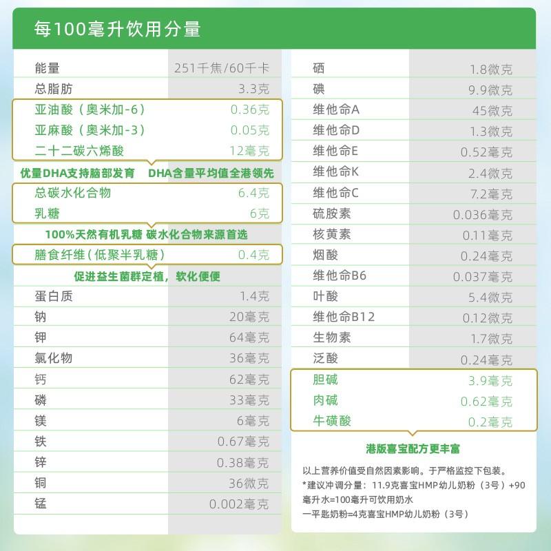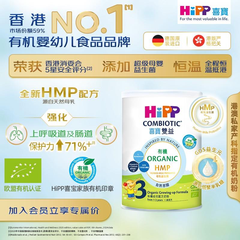 港版HiPP喜宝有机双益较大婴儿奶粉3段小罐350g 12-36月